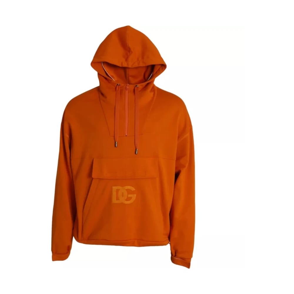 Dolce & Gabbana, Sweatshirts & Hoodies , Herr, M, Bomull, Orange Hoodie med Logotyp