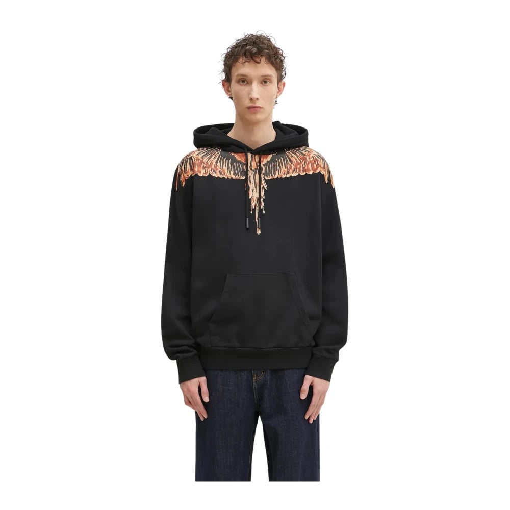 Marcelo Burlon, Sweatshirts & Hoodies , Herr, S, Bomull, Icon Wings Hoodie Svart Orange Grafisk