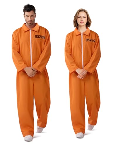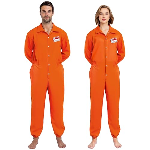 Dzorim Halloween fångoverall kostym herr häftade sparkdräkt orange fångad overall män kvinnor orange prison jumpsuit prisoner outfit kostym cosplay