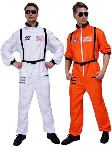 Maxim Party Supplies Mens Astronaut Costume Jumpsuit for Adults with Embroidered Patches and Pockets (Large, Orange)
