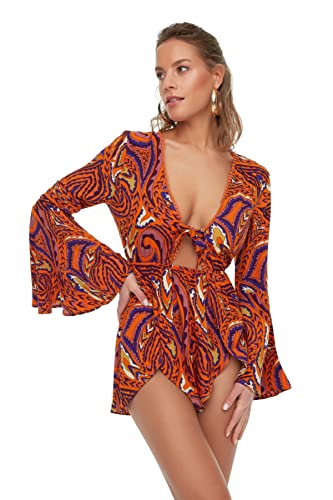 Trendyol Abstrakt vävd jumpsuit för kvinnor, Orange, 62 SE