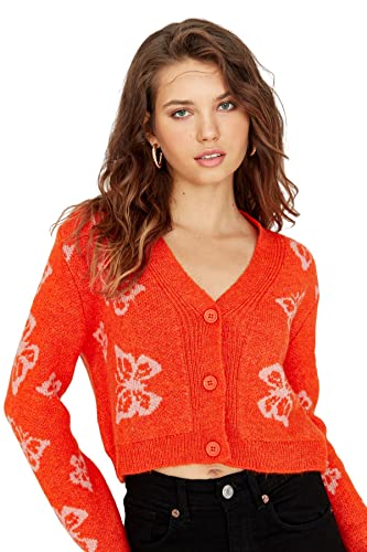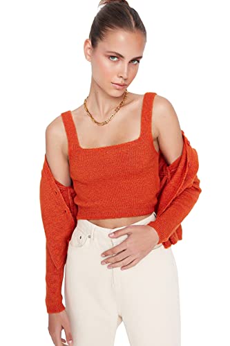 Trendyol Dam myskläder smal enkel rund hals stickad cardigan, Orange, S
