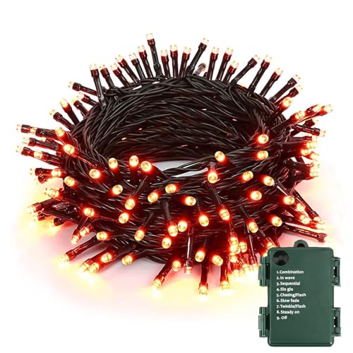 PhilzOps Halloween dekorativ ljusslinga med 100 lysdioder, orange, höst, batterier, vattentät, 8 lägen med timer, julbelysning för inomhus, rum, hem