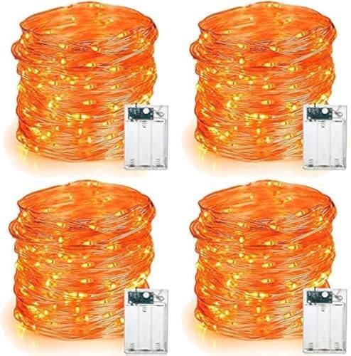 PhilzOps Ljusslinga, höstdekoration, 4 stycken, 6 m, 60 LED-lampor, orange halloweenljusslinga, batteridriven, silvertråd, stjärnbelysning för rum, fest, jul