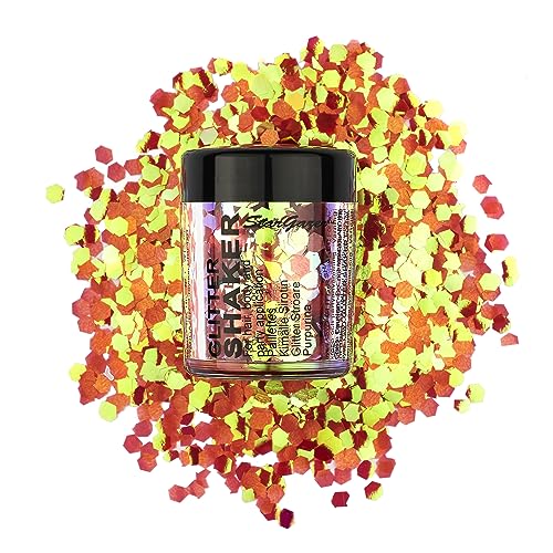 Stargazer tjock glitterskakare, UV orange. Kosmetisk glitter för användning på ögonen, läppar, ansikte, kropp, hår och naglar.