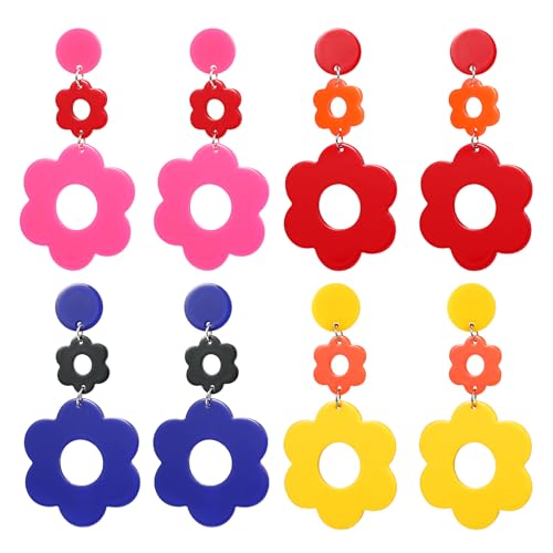 PHOGARY Boho blomma örhängen, bohemiska 70-tal hippietillbehör för flickor, hartshänger, 60-tals festsmycken, 4 par