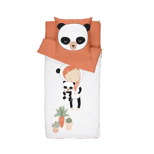 Bleu Câlin Caradou sängkläder för barn, 4 delar, inkl. täcke, färg: Miss Panda orange, 90 x 190 cm, CAR0