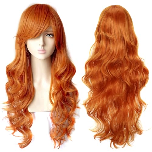 Colorful panda 32 tum/80 cm orange lång lockig vågig cosplay peruker för kvinnor Flickor Barn Anime kostym fest Halloween karneval peruk värmebeständigt syntetiskt hår