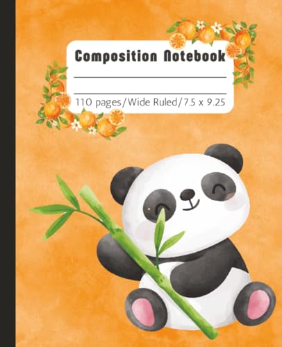 Cute Happy Orange Panda Composition Notebook | Wide Ruled | 110 Pages | Cute Panda with Oranges, Leaves and Bamboo – Fun School Journal for Kids, Students & Panda Lovers