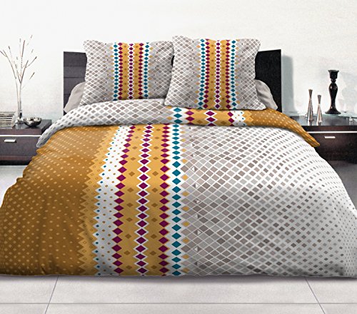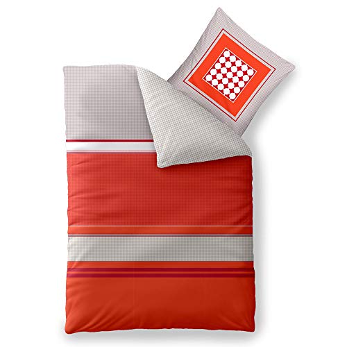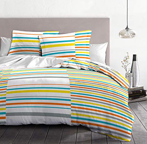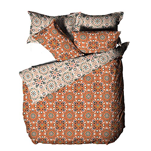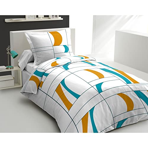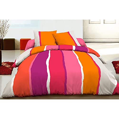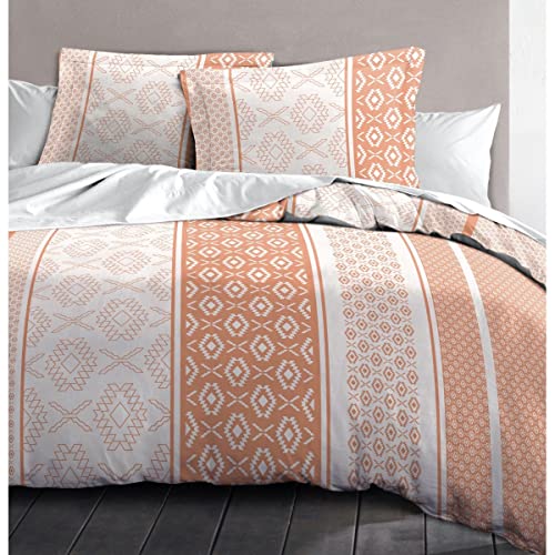 Nuit Des Rêves Ranforce Single XXL täcke täckset, 100% bomull, 155 x 220 cm påslakan & 80 x 80 cm örngott, orange och vit, maskintvättbart, elegant design