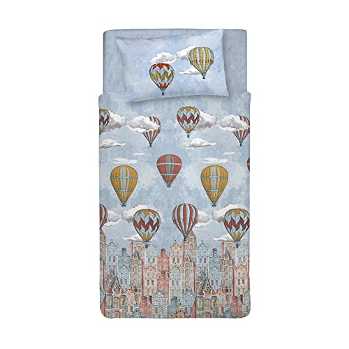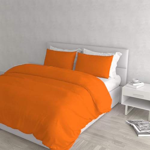 PENSIERI DELICATI Parure Påslakan Singel 100% Bomull, Komplett Med Påse 155x200 cm Och 1 Örngott 52x82cm, Tillverkad i Italien, 40° Tvättbart Påslakan I Tvättbar, Orange Flygmönster