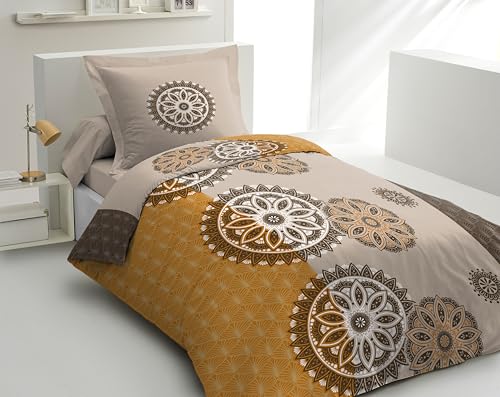Home Linge Passion | Påslakan - 2 delar | 100% bomull - 57 trådar | 1 person - 140 x 200 cm | Yucatan - grått och orange ocker