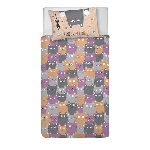 PENSIERI DELICATI Påslakanset för enkelsäng 100% bomull, komplett med säck 1550 x 200 cm och 1 örngott 52 x 82 cm, tillverkat i Italien, maskintvättbart påslakan i 40°, Happycat orange