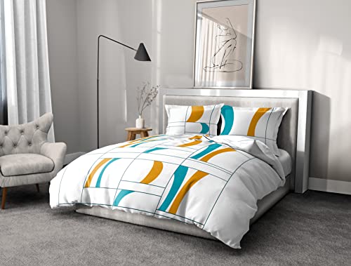 Quixora Påslakan i retrostil orange brunt sängkläder 180 x 200 cm pojkar flickor vuxen tonåring, mikrofiber sängkläder set