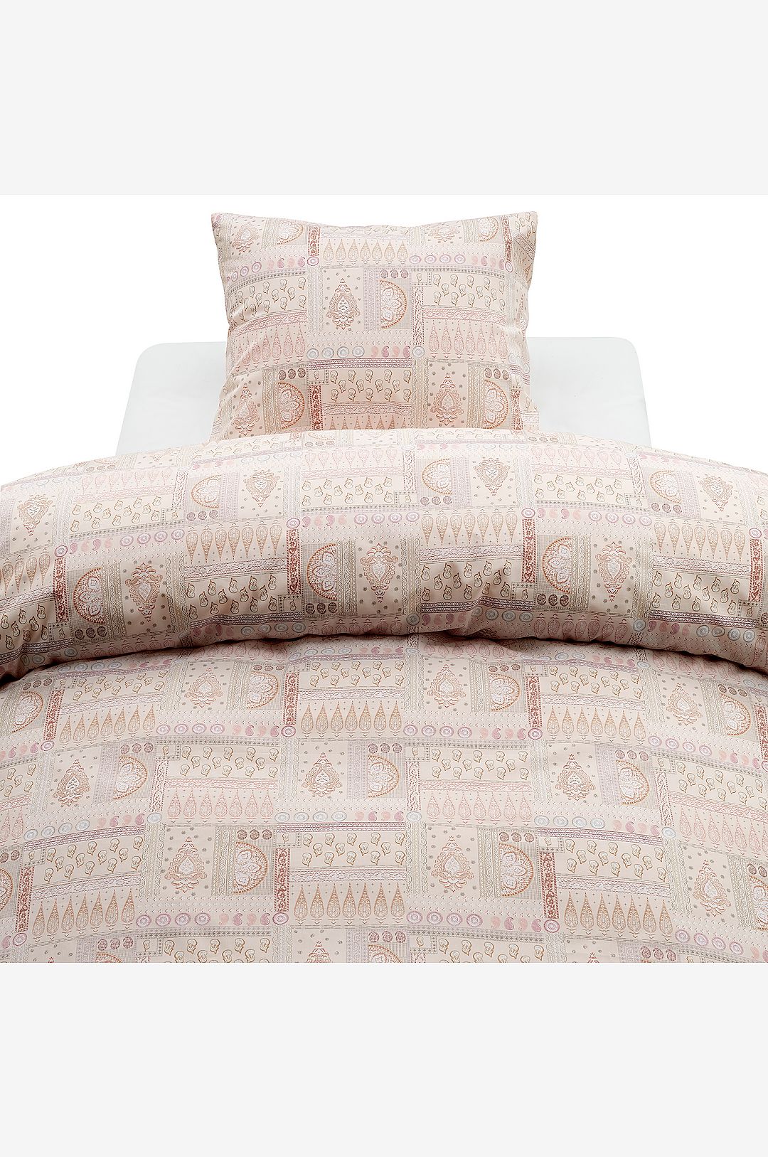 HOME LINGE PASSION påslakan 3 delar 220 x 240 cm, 57 trådar kärlek söt est, bomull, beige-vit-orange-röd