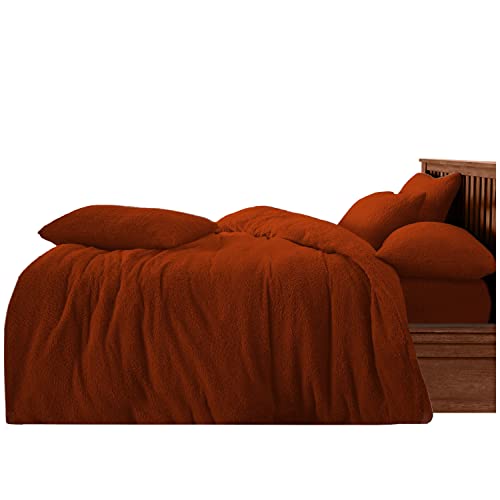 Sleepdown teddy fleece rost orange påslakan täcke sängkläder set med örngott termisk varm mysig, supermjukt lättskött sängkläder - dubbel (200 cm x 200 cm)