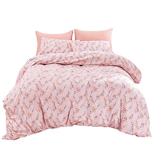JSD 3-delat påslakanset med orange blommigt tryck queen size, mjukt blått paisleymönster påslakan med 2 örngott