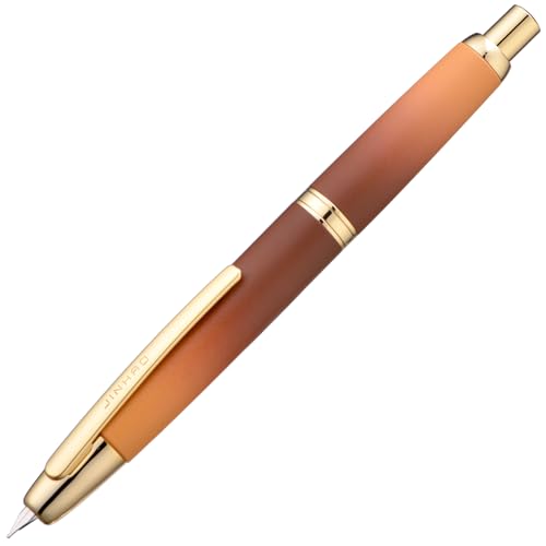 Jinhao 10 Press Reservoarpenna med Låda, Karamell Orange Gradient Infällbar Fin Spets med Bläck Omvandlare Set (Gyllene Klipp)