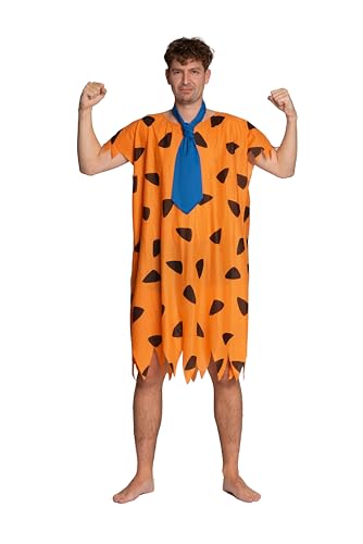 Partychimp Holbewer Fred-kostym för män, tecknade serier, grotta man, karneval, orange, tunika och slips – storlek XL