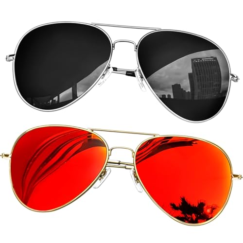 KANASTAL 2 Pack Dubbla Bro Solglasögon Herr Polariserade, Classic Stora Lätt Metall Ram Black Sunglasses Retro, Orange Solglasögon Dam, Sunglasses for Men Women as Golf Körning Fiske Utomhus