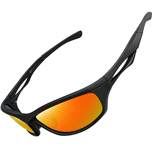 Joopin Sportsolglasögon för Män Kvinnor och Polariserade Sportglasögon Körglasögon UV400 Körning Cykling Golf Fiske Rektangel Ultralätt Sport Solglasögon Orange Röd