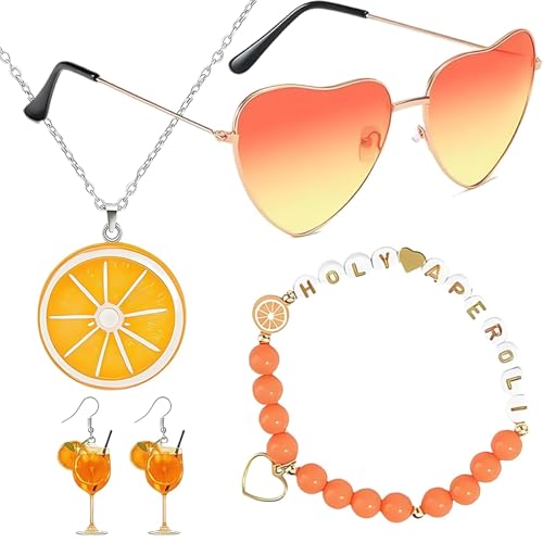 oooaooo 4 stycken armband orange, kostym tillbehör dam solglasögon apelsinjuice örhängen inklusive solglasögon orange örhängen halsband armband för kvinna flickvän karneval fester