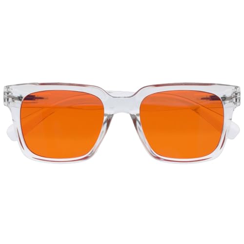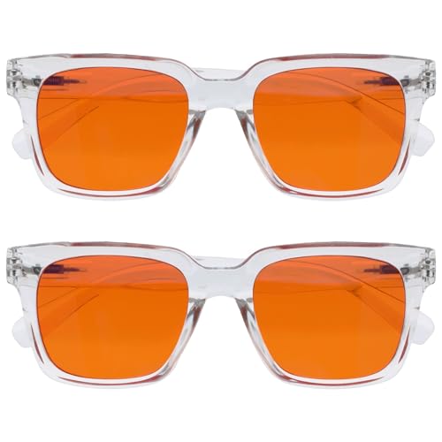 OPULIZE ERA solglasögon, orange tonad lins, 2-pack, antireflekterande anti-bländning UV400-skyddslinser, överdimensionerad rektangulär ram, fjädergångjärn, klar, unisex, Klar, orange tonade linser, 2
