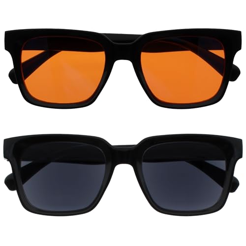 OPULIZE RA Orange lins solglasögon UV400-skydd anti-bländning rektangulära överdimensionerade solglasögon fjädergångjärn svart unisex 2-pack svarta färgade linser, Svarta, orange färgade linser 2-pack