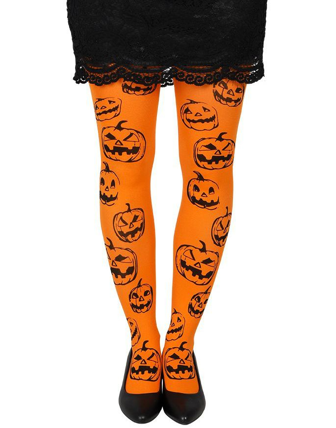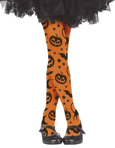 FIESTAS GUIRCA | Halloween trosor för barn (7–12 år) - strumpbyxor och strumpor för flickdräkter - pumpor och fladdermöss - perfekt för halloweenfester och fester - orange och svart