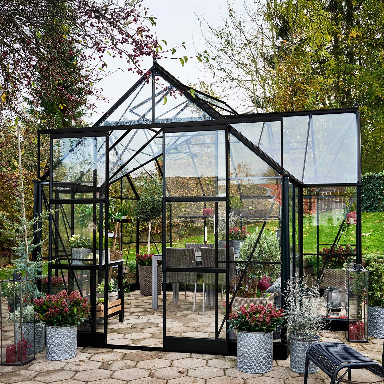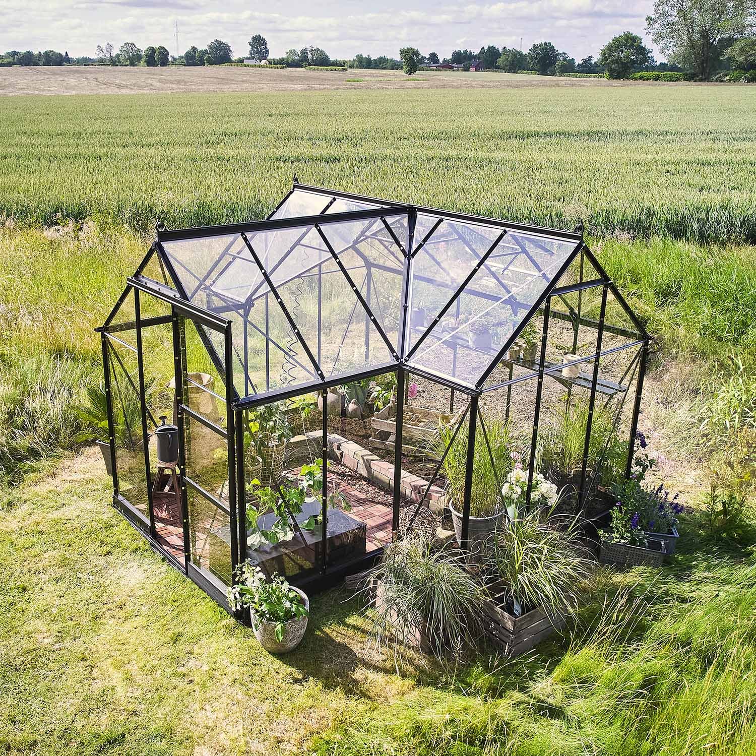 Orangeri 12,9m² fristående växthus aluminium säkerhetsglas