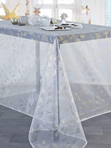 CALITEX Leaf Organza bordsduk guld silver, 140 x 250 cm