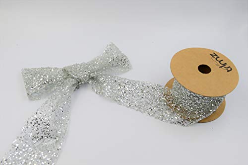 Molshine 45 m guld organza-band skimmer tunt glitterband för DIY, hantverk, presentförpackning, festival dekorativ (silver, 10 mm (3/8 tum)