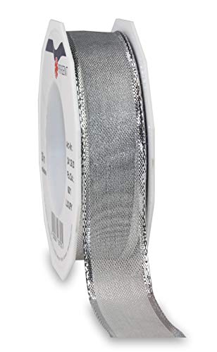 Präsent – lyxigt trådbundet organza-band silver 25 mm bredd, 20 m längd