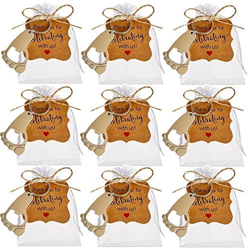 Amajoy 30 delar fotavtryck nyckelring flasköppnare baby shower presenter för gäst baby shower priser födelsedagsfest presenter flasköppnare souvenirer med organza-väskor tacktaggar och snöre (silver)