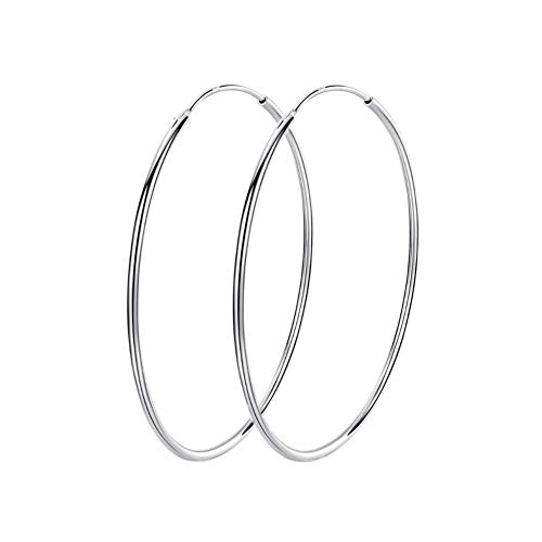 925 sterling silver stora ringörhängen cirkel ändlösa huggie stora ringar örhänge 40/50/60/70/90 mm för kvinnor flickor (70 mm), Vitguld