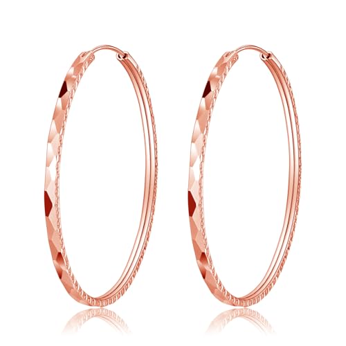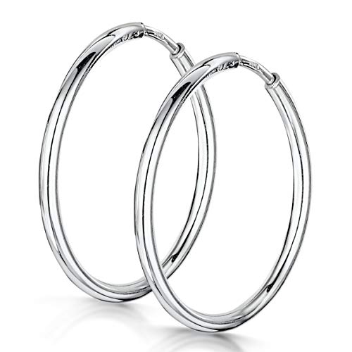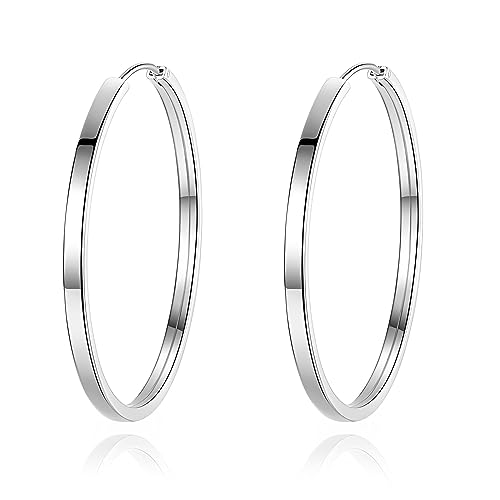 Deyanse Stora silver kreoler örhängen för kvinnor, vikbara creoler silver 925 stora, allergivänliga polerade örhängen, kreoler, 40/50/60 mm diameter rund cirkel oändliga örhängen, tunna stora kreoler