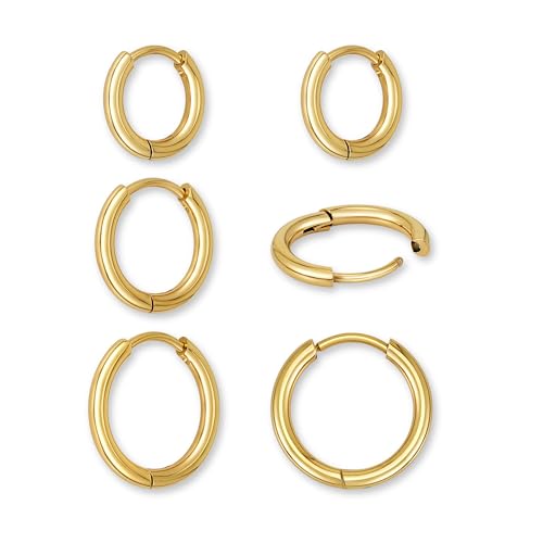 Creoler i guldpläterat rostfritt stål för damer – 3 par eleganta små guldfärgade creoler (12mm, 14mm, 16mm) | Örhängen i kirurgiskt stål guldpläterade i 18K – Creoler för herrar