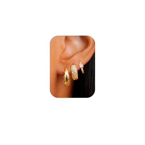 LOLIAS Örhängen, set om 3 par, guldpläterade 14k creoler örhängen, små, allergivänliga damörhängen i silver/guld, med AAA zirkon stenar, för flera öronhål, Vitguld Zirkon Kubisk zirkonia