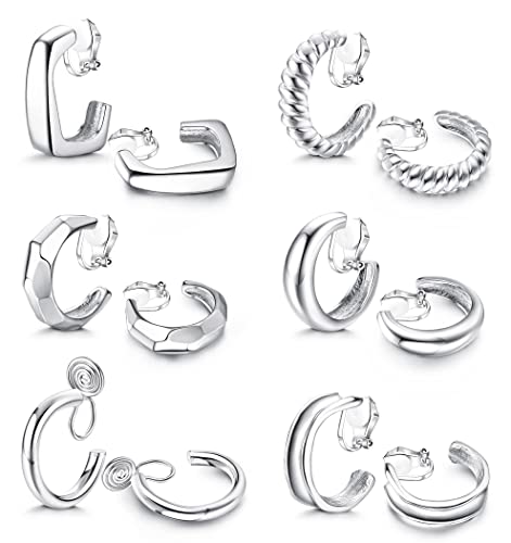 YADOCA 6 par clip-örhängen för kvinnor och flickor, set, allergivänliga stora creoler, operforerade, clip-örhängen för kvinnor, silver, guld, rostfritt stål, Metall