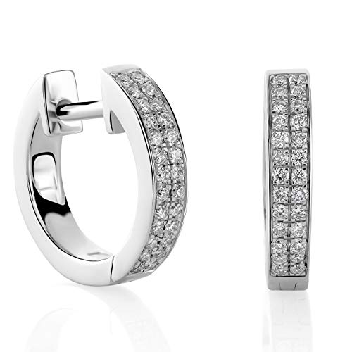 Orphelia dam kreoler guld & diamant örhängen 750 vitt guld rodium-belagd diamant (0,20 ct) vit rund slipning – OD-5289, Vitguld, Diamant