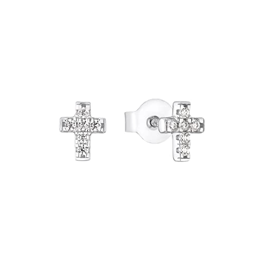 Elli Örhängen damer örhängen kors symbol i 925 sterlingsilver, fasettslipning, Utan