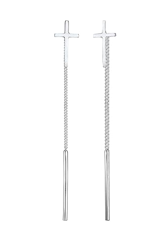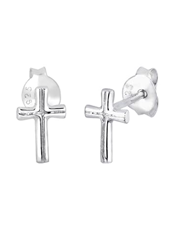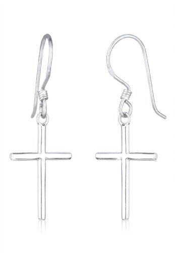 Elli Örhängen damer kreoler kors hänge tro religion i 925 sterlingsilver, En Storlek, Precious Metal, Utan