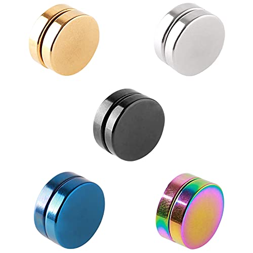 Zeayebsr 5 st starka magnetiska örhängen för man kvinna falsk klämma icke-piercade stiftörhängen allergivänliga 8 mm diameter (-), Rostfritt stål, Ingen ädelsten