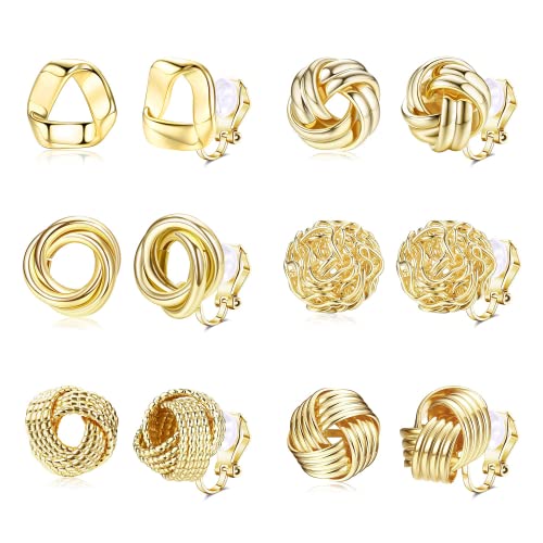 SpetngSake 5 par guld clips örhängen, allergivänliga, dam, utan hål, kreolsk klämma, gyllene