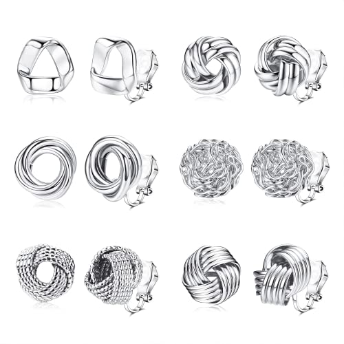 MILACOLATO 6 par clip-on-örhängen – kubisk zirkon pärlknut vridbara clips för kvinnor och flickor, Pärla Kubisk zirkonia