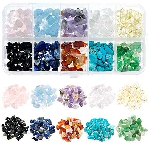 Bakiauli 300 stycken natursten pärlor ädelstenar pärlor, 10 färger ädelstenar med hål smycken pyssel för gör-det-själv smycken halsband armband örhängen dekorationer