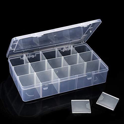 Zhenle Förvaringslåda i plast, 15 stora galler, genomskinlig 27,5 x 16 x 5,5 cm, smyckepärlorganiseringslåda, förvaringsbehållare med avtagbara avdelare för hantverk, pärla, nagelskruv, örhängen,