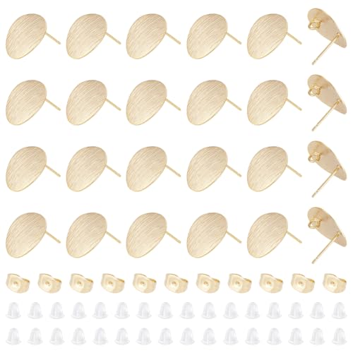 UNICRAFTALE 24 st örondubbar i mässing med ögla 18K guldpläterade stiftörhänge fynd platta runda örhängen med 24 st öronmuttrar i mässing 50 st öronmuttrar i plast för gör-det-själv-örhängen