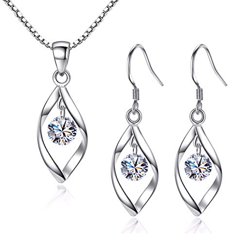 Zolkamery Silversmyckesset för kvinnor, 925 sterling silver damsmyckesset med vit/blå/rosa zirkonia, allergivänligt vridhänge halsband och krok dinglande örhängen set present med presentask