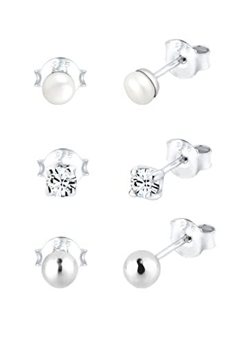 Elli dam örhängen örhängen set basic minimalt med sötvattenspärlor och kristaller i 925 sterlingsilver